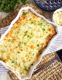 I grew up eating cheesy potatoes but, most of the time, they were from a box. Which is totally OK in my book, I’m not judging anyone if you have ever made box potatoes but these are amazing and completely from scratch.