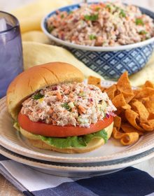 Aside from the classic tuna salad sandwich, we also love to stuff a juicy summer tomato with this simple recipe. Kids also love it in these easy Tuna Tacos!