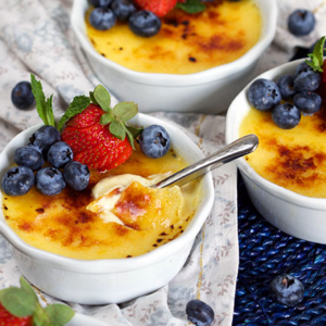 We love this Kitchen Torch for making creme brûlée but it’s also handy for so many other things like roasting peppers, toasting marshmallows, melting cheese and more.