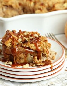 While this Caramel Apple Bread Pudding is great just as it is, we love amping it up a notch with a scoop of vanilla ice cream or topped with a dollop of homemade whipped cream!