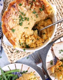 This easy sweet corn casserole is such a hit with kids and adults. It’s the most amazing carb-y comfort food ever and so simple to make. It’s my favorite way to make baked creamed corn casserole which is what we called it when I was a kid.