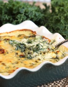 My Cheesy Kale Gratin recipe is super easy to make and you can prep it ahead of time to bake right before serving. It’s a fantastic side dish for any occasion…even the super gluttonous favorite coming in just a few short weeks. Serve it alongside your turkey with your favorite stuffing and cranberry sauce for a simple, yet super festive, celebration. Don’t forget the popovers and cocktails…I like to nibble and sip while the family starts talking all things politics. It’s like the best reality TV there is….minus the camera crew….and commercial breaks. 🙂