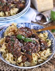 Back to the meatballs….I’m a huge fan of chicken marsala and I’ve recreated a couple easy recipes for you already like this super popular Slow Cooker Chicken Marsala Stew. It’s really old….the recipe, not the dish…like it’s not been sitting in the back of my fridge since the first post was published….so please excuse the photos…but it’s so good and comforting and totally easy to make that it’s been going strong since I posted it many years ago.