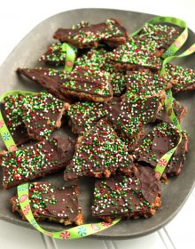 This week the face stuffing continues with this “twist” on my favorite Saltine Cracker Toffee….I twisted it with pretzels. Get it? Twist…pretzel. Yeah…moving on.