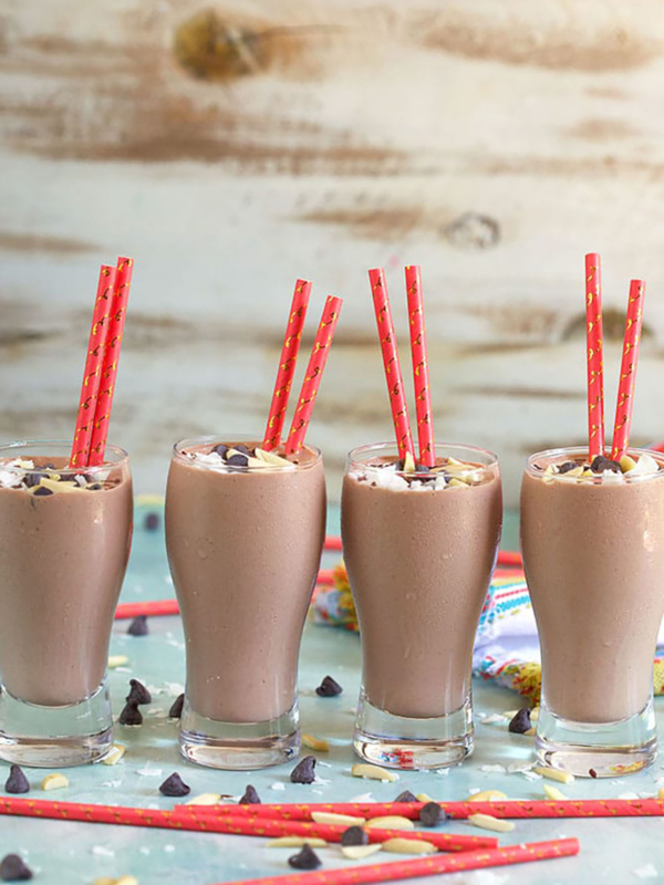 Strongly brewed coffee gives this coffee smoothie a boost of caffeine, but that’s not the only way that it will energize you throughout your day. Almond butter adds protein and healthy fats, protein powder ups the protein count even more, and banana works some fruit into your AM meal. Basically, you get everything you need for breakfast in convenient sippable form!