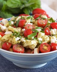 I love any variation from a simple macaroni salad to a chopped italian pasta salad. I could eat it all. And with everyone flipping out over “Caprese” everything, I thought I’d just go with it. Because it’s summer and we need to take it easy.