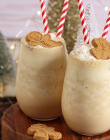 We’re just a couple short weeks away from Christmas! Yay! To keep energized during my workouts and holiday shopping trips I try to satisfy my sweet tooth while packing in some healthy stuff. This Easy Gingerbread Cheesecake Smoothie is one of my favorite protein packed snacks.