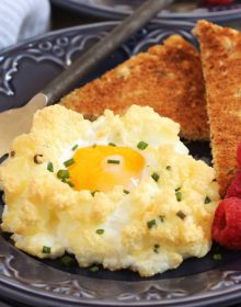 Honestly, I like this simple recipe just the way it is with just a pinch of flaky sea salt and freshly cracked black pepper. However, you can serve your Cloud Eggs with a dash of hot sauce or even Hollandaise Sauce if desired!