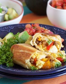 *Roasted diced potatoes or crispy hash browns both work. Keep fillings warm, but not steaming, before rolling to prevent soggy tortillas.