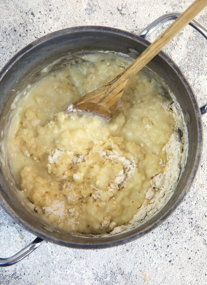 - Be patient. Wait for the liquids to come to a full boil before adding the flour. This is key to getting the right consistency for the dough!