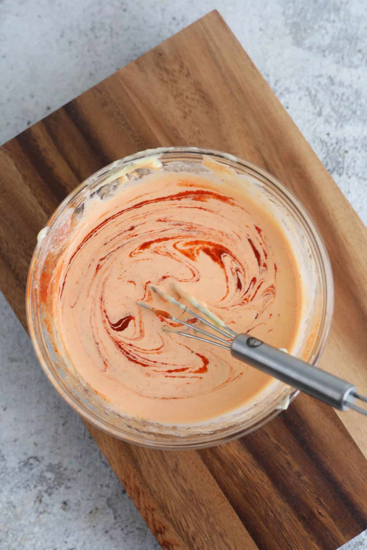- Adjust the sriracha to your liking. You can add more or less sriracha depending on how spicy you want your mayo to be.