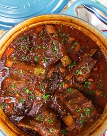 Because short ribs come from a tough cut of meat, braising them in liquid like wine or beef stock is necessary to make them tender and melt-in-your-mouth amazing. They soak up flavor like a sponge, too, so it’s fun to play around with the ingredients to amplify the flavor.