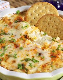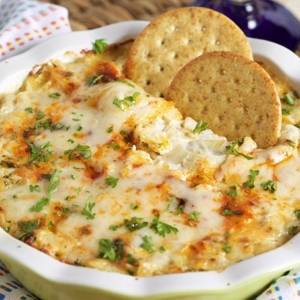 The perfect party starter! Hot Artichoke Dip is quick and easy to make…and always the first dish to vanish at any gathering. Melty cheese and buttery artichokes are a fabulous pairing in this addictive dip.