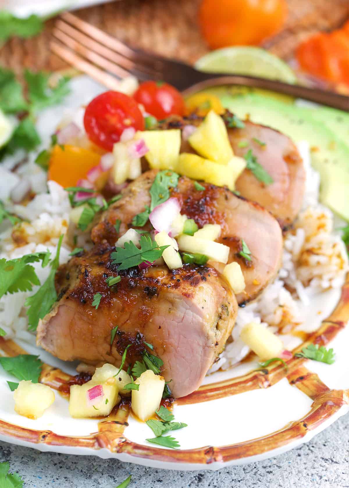 Great for entertaining. Slice it up and pile it on a platter with some pineapple pico de gallo and rice for a tropical-inspired party dish.