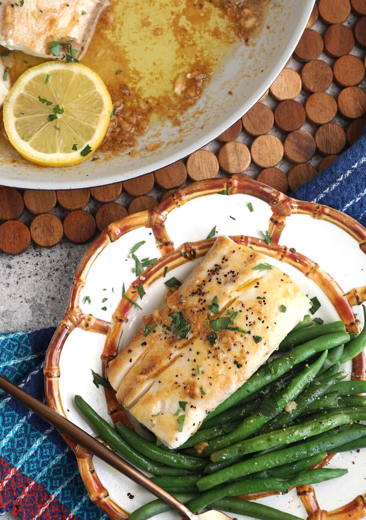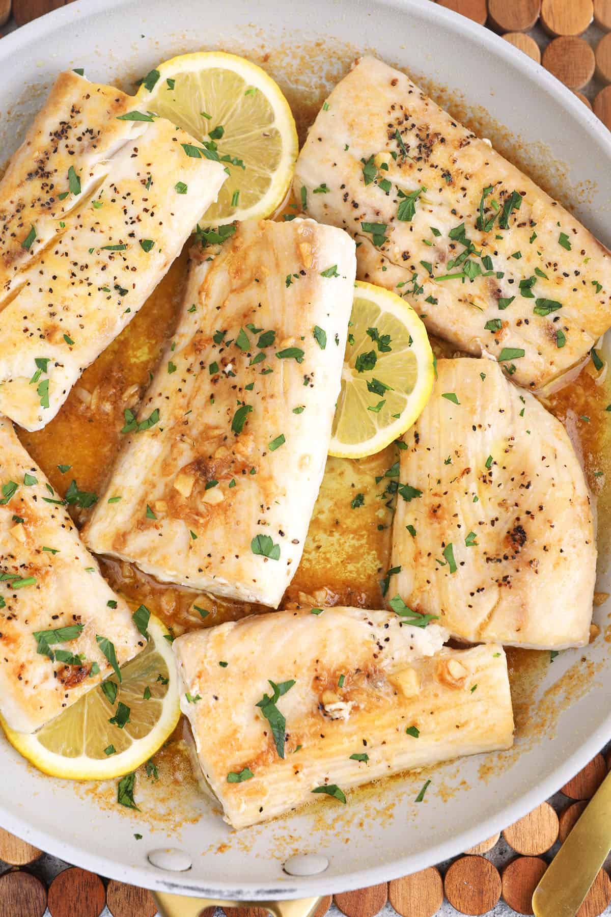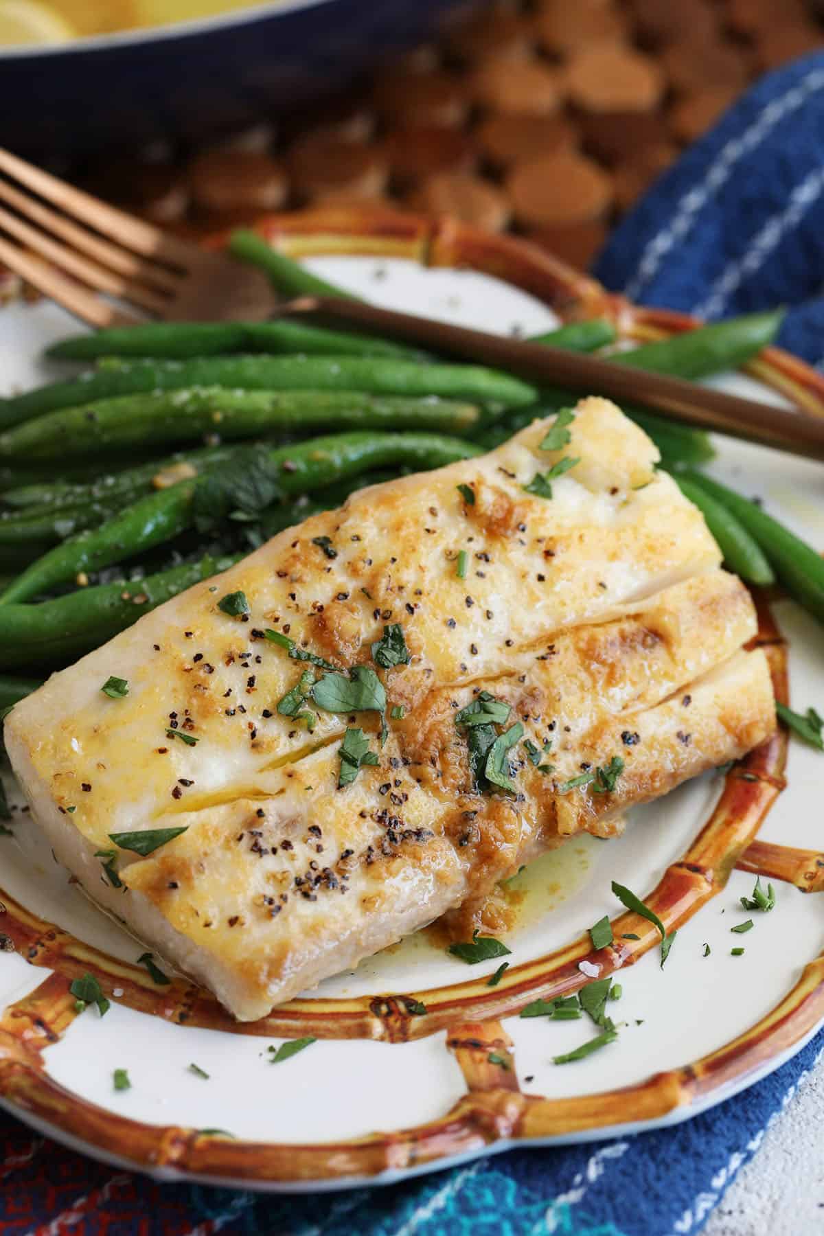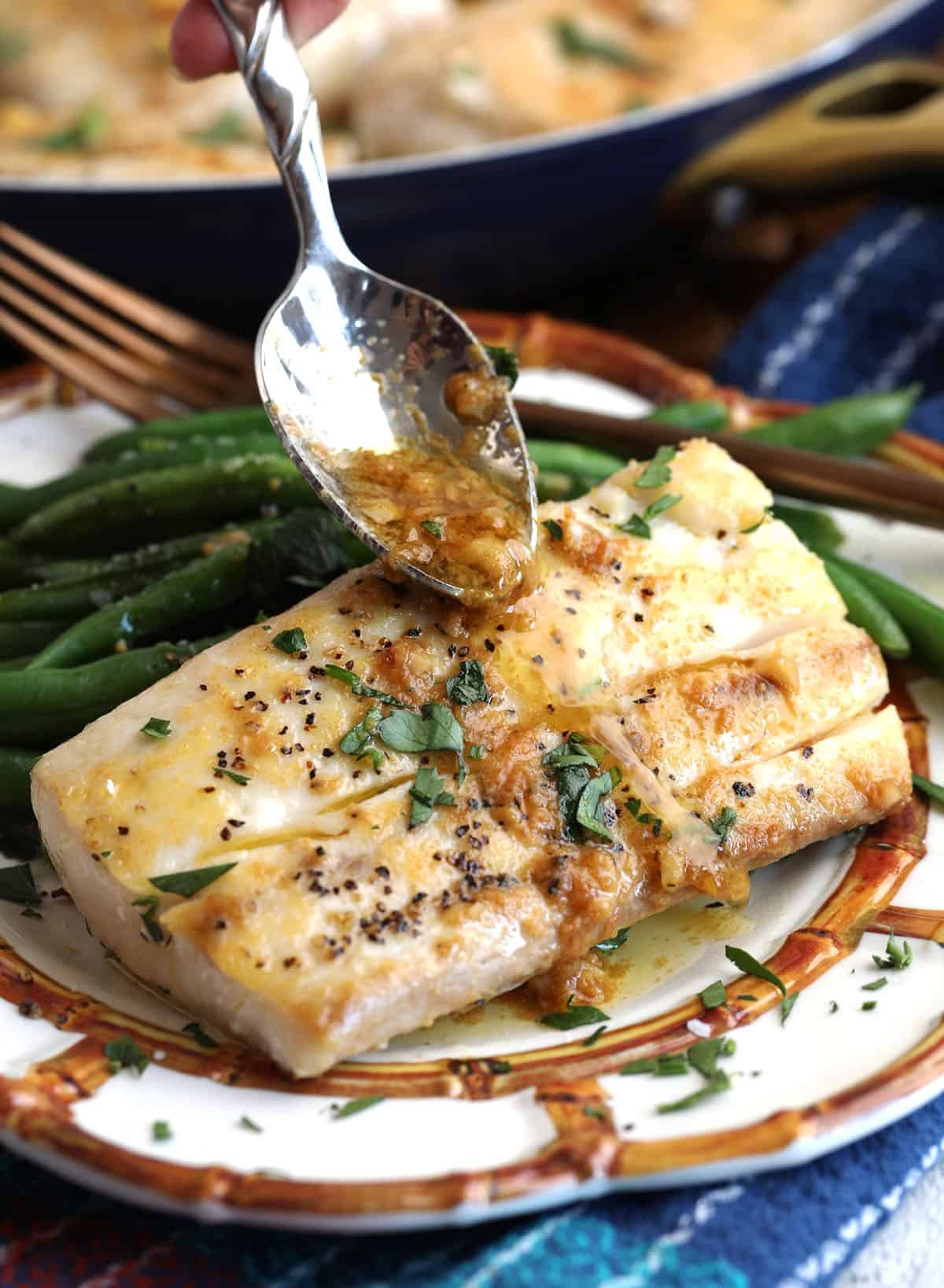 - Pan Seared Halibut with Brown Butter Garlic Sauce