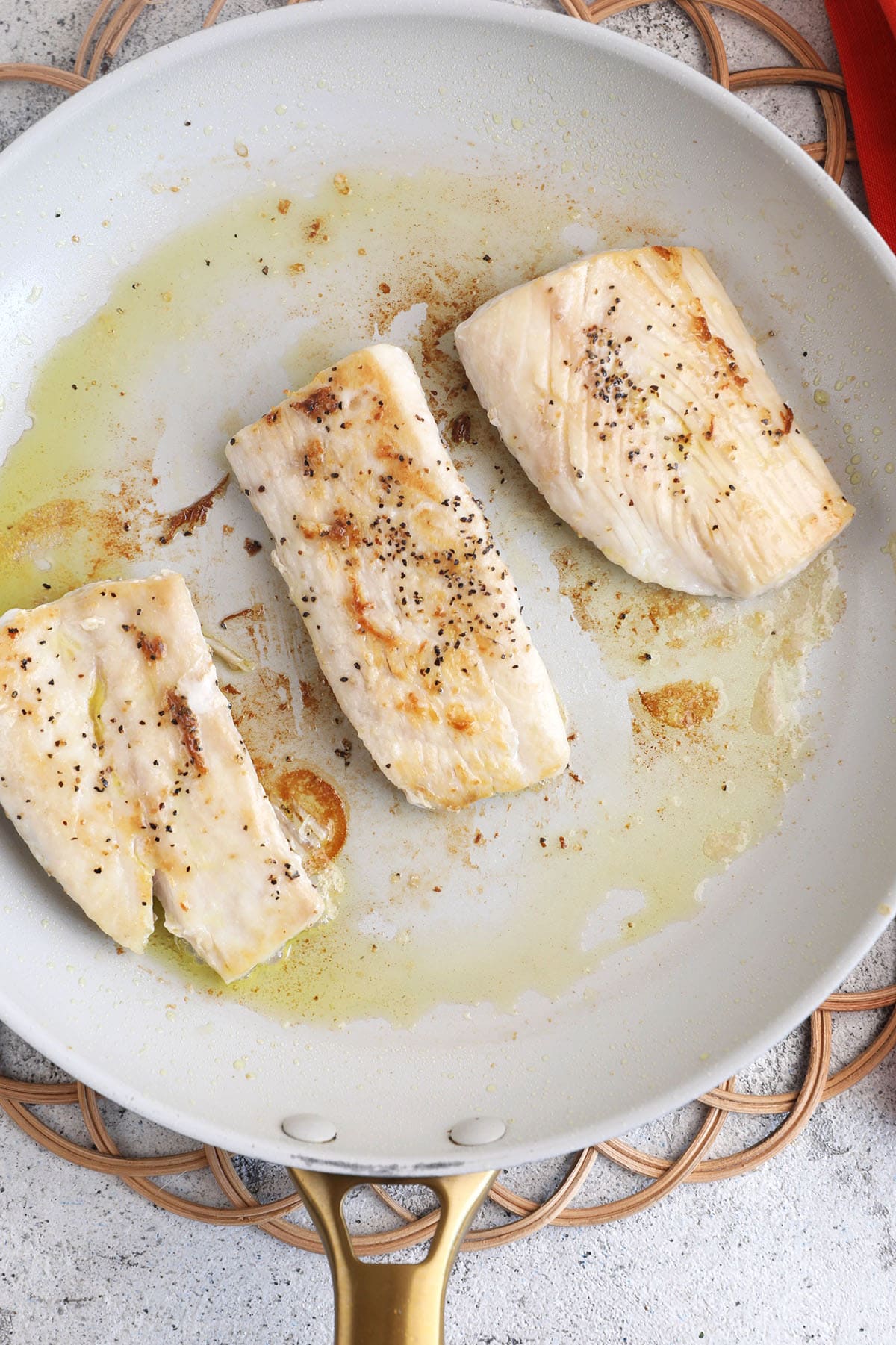 - When the fish is done cooking, transfer the filets to a platter and keep warm.