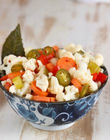 Chicago Style Giardiniera is commonly made with sport peppers but since they’re not widely available I added sliced serrano peppers to my recipe. You can also use sliced jalapenos since they’re easier to find.