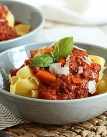 It’s excellent for making an easy Spaghetti Bolognese topped with a little ricotta cheese or grated parmesan.