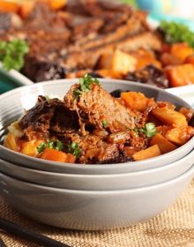 Pot Roast with Butternut Squash and Dried Plums is a slow roasted dinner that’s just as comforting as it is delicious. It’s a wonderful choice for a homemade Sunday supper, and it makes the BEST leftovers the next day! I also share instructions for both using a slow cooker and oven roasting, so you can use your preferred method.