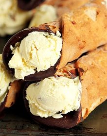 Creamy, sweet Ricotta Ice Cream Filled Cannoli taste just like regular cannoli but are a chilly treat that’s a spectacular summertime dessert. A surprisingly easy ice cream snack that’s great for entertaining.