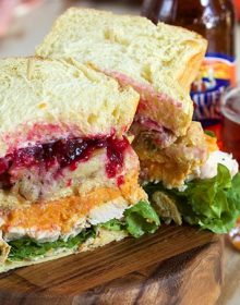 The infamous sandwich, complete with “Moist Maker”, made famous by the hit TV show Friends. Ross Geller’s Thanksgiving Leftover Turkey Sandwich is the BEST way to clean out the fridge the day after Thanksgiving. Turkey, stuffing, cranberry sauce, gravy and the all important Moist Maker piled high into the most epic sandwich ever made. One of my most favorite things.