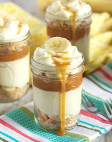 The ultimate summer dessert amped up! Salted Caramel Banana Pudding is a fabulous spin on the southern favorite, layers of cookie crumbs, lightly whipped pudding bananas and salted caramel sauce create a memorable dessert that will leave your tastebuds singing for joy!