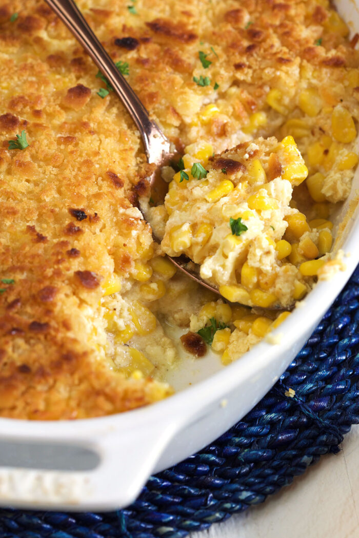 There’s no shortage of corn side dishes on this website or anywhere else in the world. So, it begs the question – how do you make a corn side dish stand out from all the others? Luckily, with this casserole recipe, it does all the work for me! Seriously, it’s so downright delicious, my family asks for it on a weekly basis now, and it’s not hard to see why. It’s sweet, savory, cheesy, and completely mouthwatering.