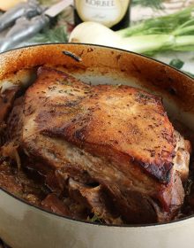 Pork Shoulder Roast – I like to make it with a super inexpensive bone-in pork shoulder roast. It’s perfect for braising…..it’s really the only way to cook it a pork roast so it’s juicy and melt-in-your-mouth tender. You can use just about any pork roast for this recipe but I like to use something inexpensive since we’re sprucing it up with other goodies.