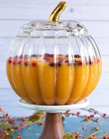 Sparkling Spiced Pumpkin Punch makes a great Thanksgiving or Christmas punch recipe because you won’t spend hours at a bar or counter mixing drinks for your guests. They can, literally, just serve themselves and YOU can enjoy your party, too!