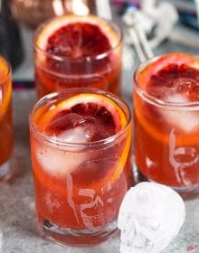 How easy is that? And it’s the perfect party drink for fall and winter with the warm spices from the rum and the bright citrusy flavor of the blood orange. It’s a great signature cocktail if you don’t have one already and I like to serve it along with these easy appetizers when I’m hosting impromptu parties: