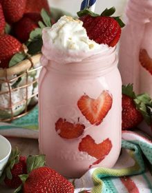 Frozen strawberries help make this Strawberry Cheesecake Smoothie thick and frosty without watering it down like ice would. And the hint of vanilla balances everything out….making this taste just like a piece of liquefied strawberry cheesecake. It’s true. If you’re looking for something a little more tropical try my Pina Colada Chia Seed Smoothie or my Strawberry Banana Smoothie! I also LOVE this Mango Smoothie for something a little light and refreshing.