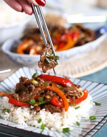 Skip the take out and stay at home, this super easy Mongolian Beef recipe is just like PF Chang’s Mongolian Beef. Thinly sliced beef stir fried with green onions, peppers and swimming in a savory sauce that’s completely addicting. Ready in less than 30 minutes!