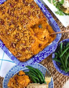 Southern Sweet Potato Casserole is like dessert masquerading as a side dish. A proper vegetable side dish with the perfect amount of sweet that you can get the most veggie hating kid to eat the whole casserole dish.