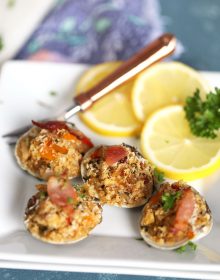 This easy Clams Casino recipe is a great appetizer for parties. You can prep them in advance and pop them in the oven right before you’re ready to serve.