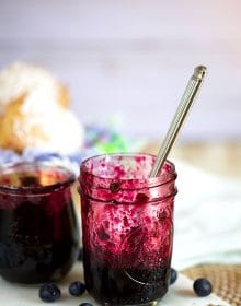 This Blueberry Jam is made without pectin and becomes thickens just by cooking it down for a bit. Then, it thickens even more when it chills in the fridge for awhile. You can make this a Blueberry Freezer Jam by transferring to a freezer safe container to stash away for winter.