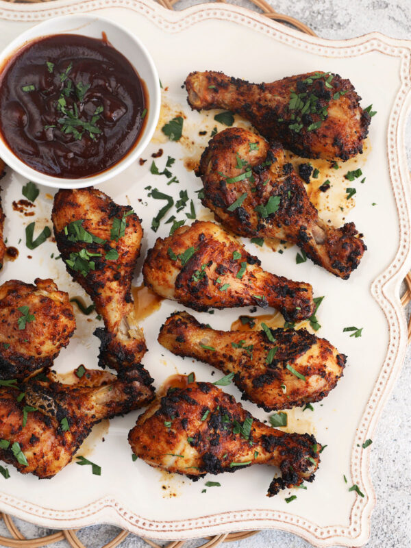 I like to marinate chicken at least 4-8 hours or overnight for boneless chicken breasts or thighs. Bone-in chicken parts I like to leave in the marinade even longer, but not exceeding 24 hours. It’s great for busy weeknights because most of the prep work is done!
