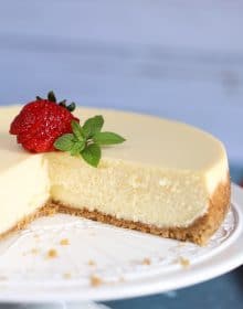Simple, easy to find ingredients make this New York Style Cheesecake recipe quick to whip up without having to search for obscure items. Sometimes I’ll use a squeeze of lemon juice to punch up the flavor but it is not in a classic New York cheesecake recipe.