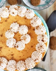 This Pumpkin Pie Cheesecake recipe is light and creamy, slightly spiced and baked in a gingersnap crust. It’s seriously the BEST Pumpkin Cheesecake recipe EVER made and ensures perfect results every time making it the perfect ending to Thanksgiving dinner.