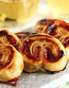 Sweet tomato jam and cheddar pair well in these addicting appetizers. Tomato Jam and Cheddar Palmiers are simple to make with refrigerated puff pastry and add a surprisingly sweet treat to your appetizer table.